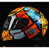 During his career, he used helmets with iconic designs, created in collaboration with artist Aldo Drudi. These helmets became a symbol of Rossi's personality and creativity.