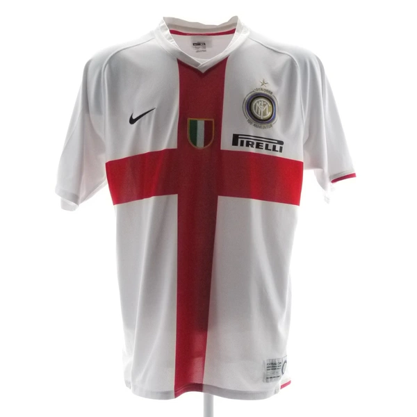 On this occasion, some Inter players (including Eto’o and Stanković) took the field wearing the short-sleeved store version of the shirt. The store shirt differs from the match-issued jerseys by the “NikeFIT” inscription stitched on the lower right front — rather than applied, as on the match shirts — and by the centenary commemorative label on the lower left side, which is not present on the match-worn versions.
