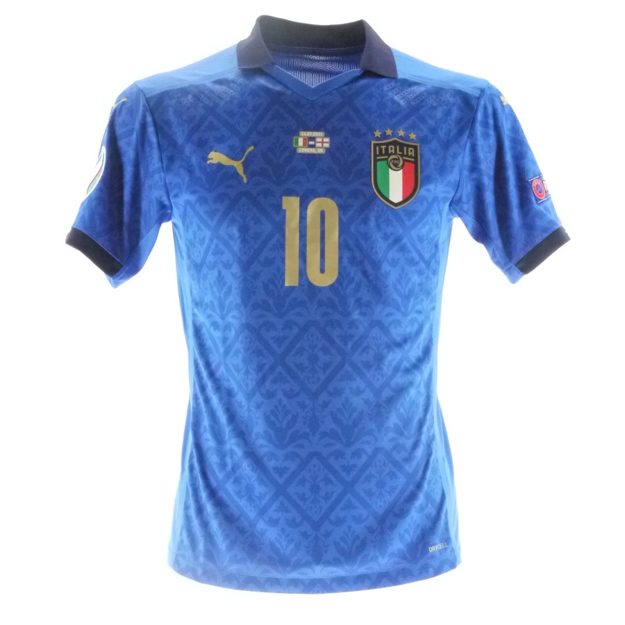 Italy match shirt issued / worn by Insigne for the Euro 2020 final against England played on 11/07/2020, 2021 season.