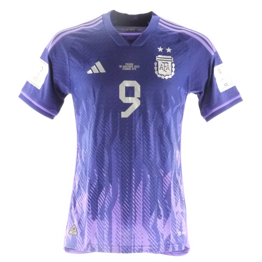 Argentina match shirt issued/worn by Alvarez in the match against Poland played on 30/11/2022, valid for the 2022 World Cup group stage.