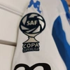 This memorabilia is part of the match supply made available to players during official competitions and is different in its features in relation to the ones sold in fanshops, it could have been worn during the match and washed after the end of the match or prepared for the match but then not used.