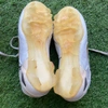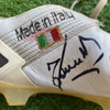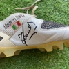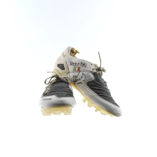 The boots show signs of wear, plausibly related to game actions, however no photographic evidence of these has been found and therefore it is not possible to guarantee beyond any reasonable doubt that they were actually worn in a match (and not perhaps become dirty in some other way over time).