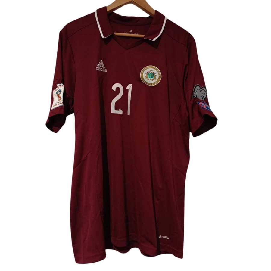 Latvia match worn / issued shirt by Fjodorovs in the occasion of a FIFA World Cup Russia 2018 qualifiers match.