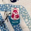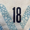 This memorabilia is part of the match supply made available to players during official competitions and is different in its features in relation to the ones sold in fanshops, it could have been worn during the match and washed after the end of the match or prepared for the match but then not used.