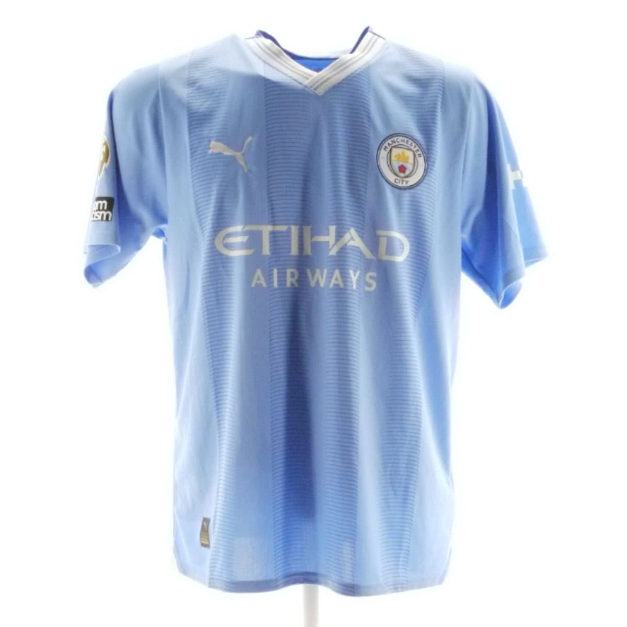 Manchester City, 2023/24 season, store shirt customized with Haaland's name and number.