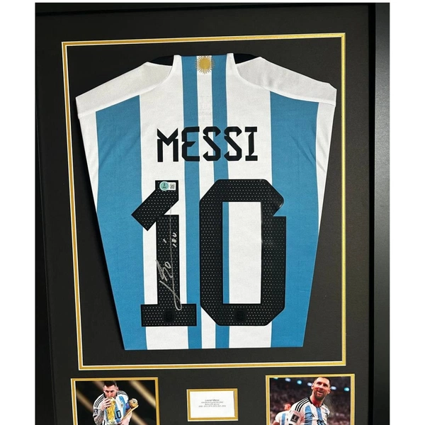 Messi has signed the shirt on the back. The shirt comes with a Beckett certificate of authenticity.