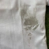 The shirt shows signs of wear, possibly related to gaming actions, however, no photographic evidence of the same has been found and therefore it is not possible to guarantee beyond reasonable doubt that the shirt was actually worn in match (and not getting dirty in other ways over time).