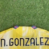 This memorabilia is part of the match supply made available to players during official competitions and is different in its features in relation to the ones sold in fanshops, it could have been worn during the match and washed after the end of the match or prepared for the match but then not used.