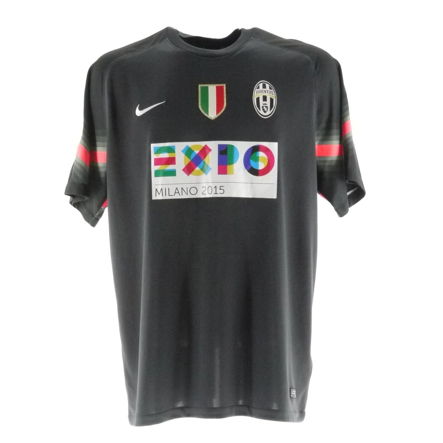 The shirt features the special ‘EXPO Milano 2015’ sponsor applied on the front, created to celebrate the Universal Exposition held in Milan that same year.This sponsor was used by Juventus on only three occasions, two of which were with this jersey model: Juventus vs Lazio and Juventus vs Fiorentina.
