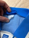 This memorabilia is part of the match supply made available to players during official competitions and is different in its features in relation to the ones sold in fanshops, it could have been worn during the match and washed after the end of the match or prepared for the match but then not used.