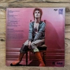 Back Cover: An iconic photograph of Bowie sitting in a chair against a pink background, dressed in a sparkly jacket and red boots. The track titles and some liner notes about the album are also shown here.