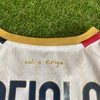 This memorabilia is part of the match supply made available to players during official competitions and is different in its features in relation to the ones sold in fanshops, it could have been worn during the match and washed after the end of the match or prepared for the match but then not used.