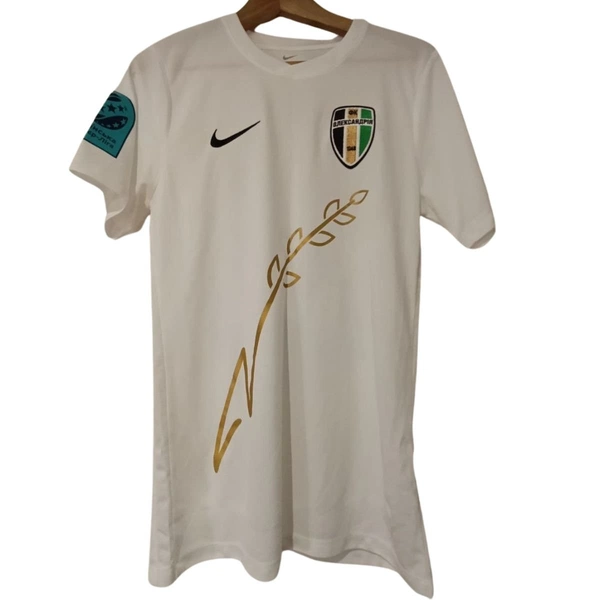 This memorabilia is part of the match supply made available to players during official competitions and is different in its features in relation to the ones sold in fanshops, it could have been worn during the match and washed after the end of the match or prepared for the match but then not used.