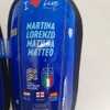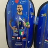 The shin guards are customized for Bonucci, and feature an image of Bonucci, with the names of his wife and his children.
