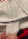 This memorabilia is part of the match supply made available to players during official competitions and is different in its features in relation to the ones sold in fanshops, it could have been worn during the match and washed after the end of the match or prepared for the match but then not used.