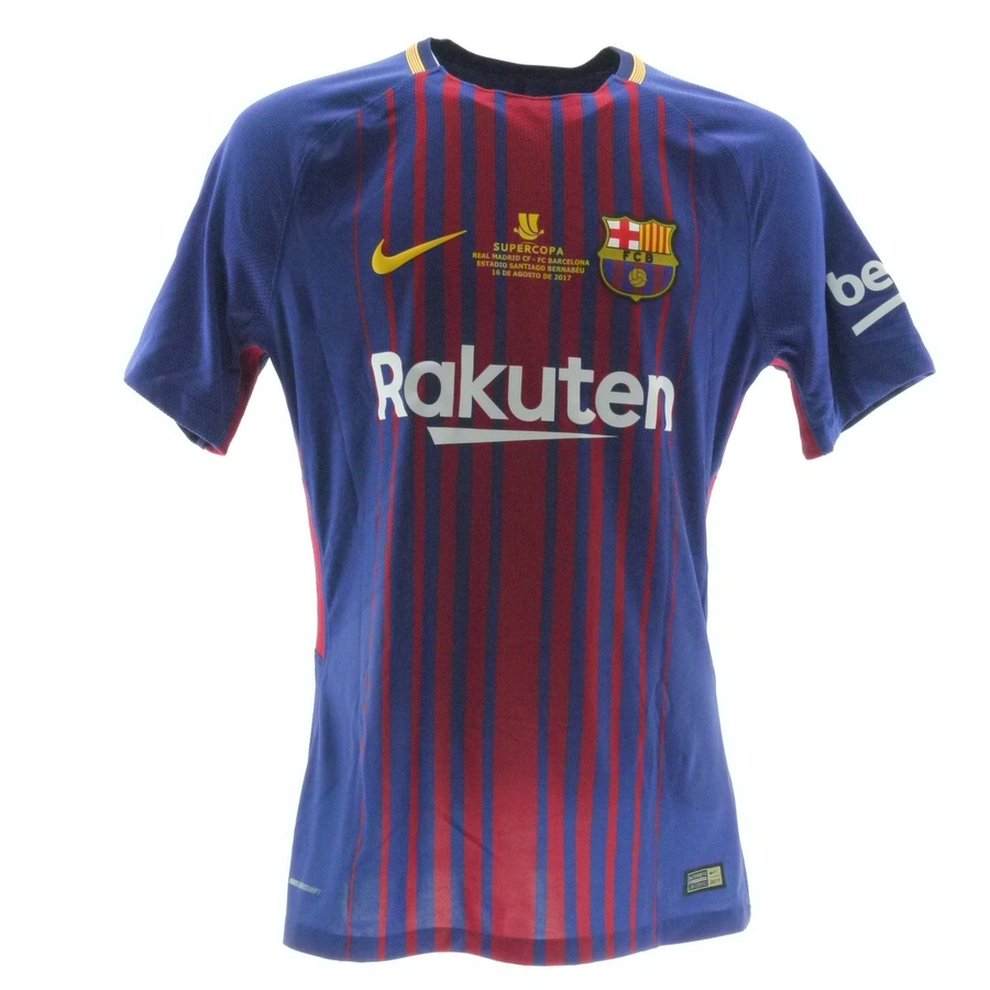 Barcelona match worn / issued shirt by Messi in the match against Real Madrid played on 16/08/2017 at Santiago Bernabeu, valid for the 2nd leg of Spanis Supercup final.