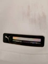 This memorabilia is part of the match supply made available to players during official competitions and is different in its features in relation to the ones sold in fanshops, it could have been worn during the match and washed after the end of the match or prepared for the match but then not used.