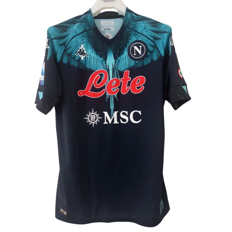 The shirt is a special model born from the collaboration between the sports club SCC Napoli with Marcelo Burlon, and it was used only in the match against Inter played on 18/04/2021, valid for the 31st match of Serie A.