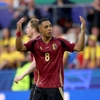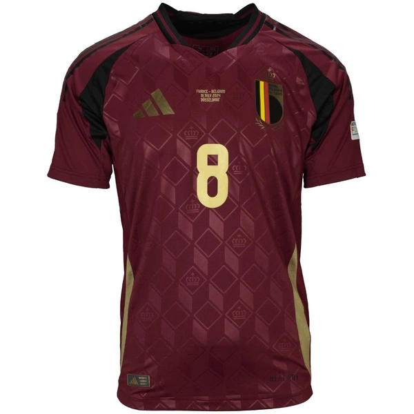 The Belgium match shirt worn/issued by Tielemans for the match against France valid for the round of 16 of Euro2024 played on 01/07/24, 2024 season.