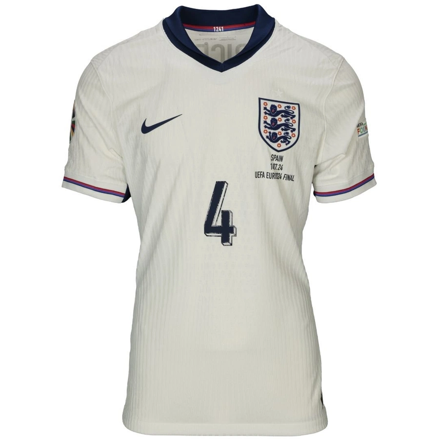 The England match shirt issued/worn by Rice for the match against Spain valid for the Euro2024 final played in Berlin on 14/07/24, 2024 season.