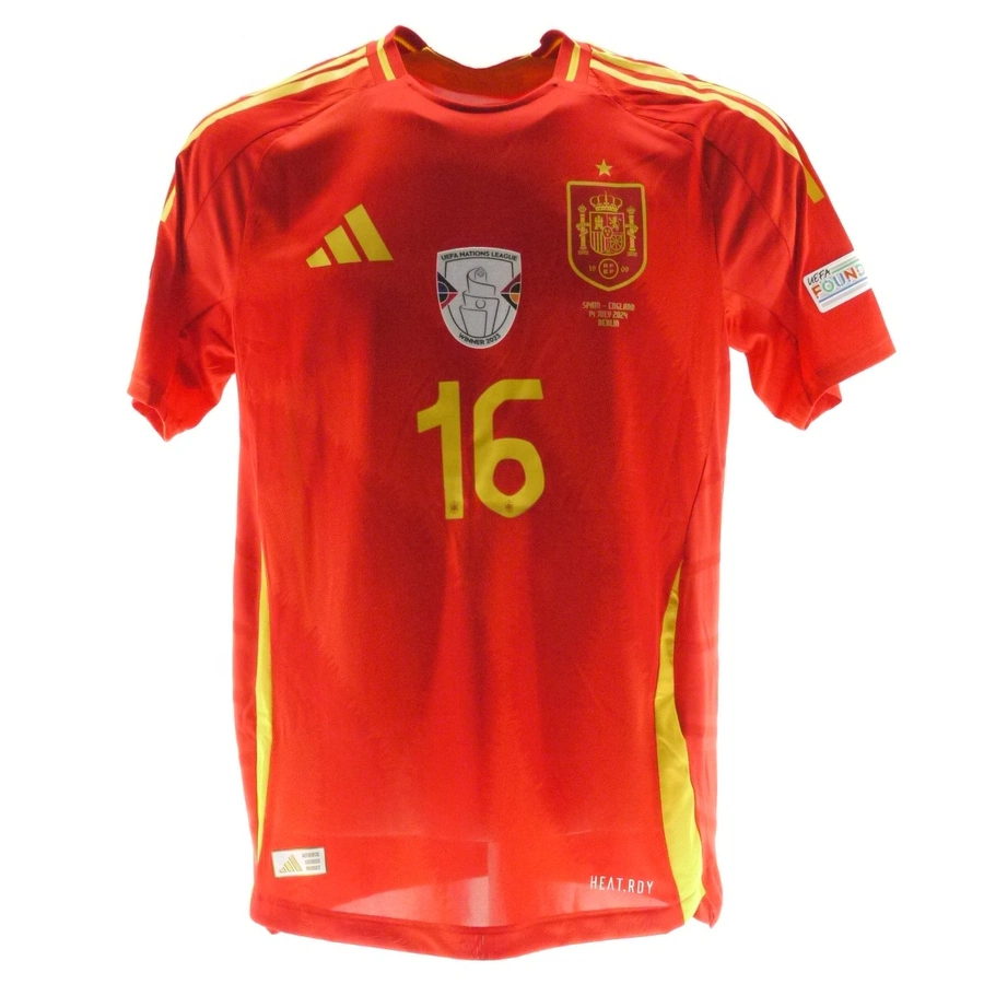 The Spain match shirt issued/worn by Rodrigo for the match against England valid for the Euro2024 final played in Berlin on 14/07/24, 2024 season.