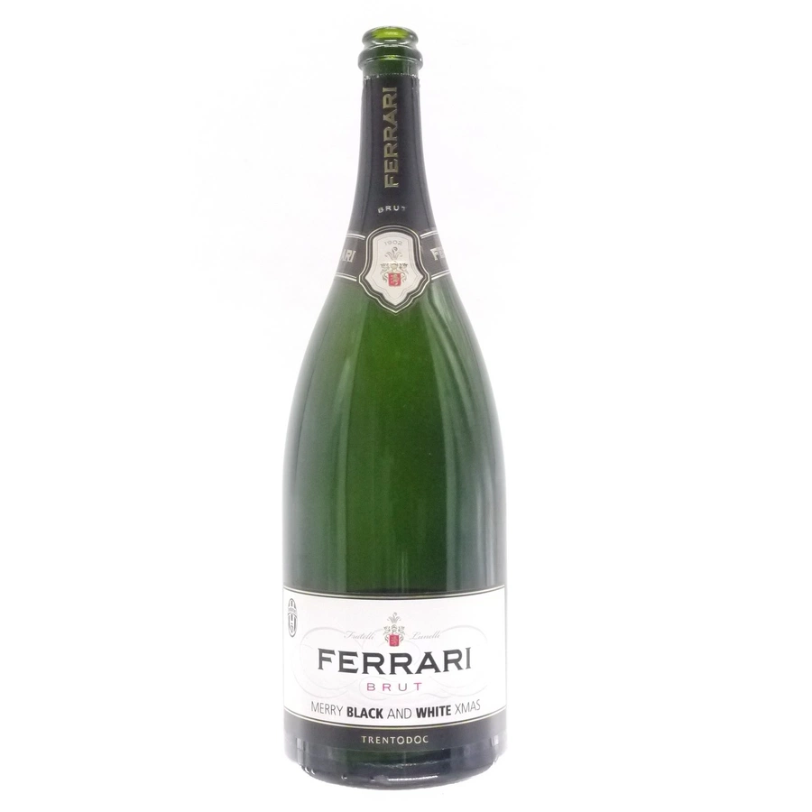 The bottle is decorated with a print applied on the front showing the writing Merry Black and White Christmas".