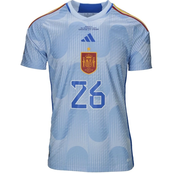 Spain match shirt issued/worn by Pedri for the match against Morocco played on 06/12/2022 valid for the round of 16, season 2022.