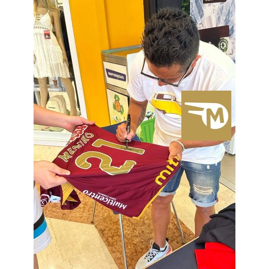 Merino has signed the shirt on the back, as visible in photo proof.