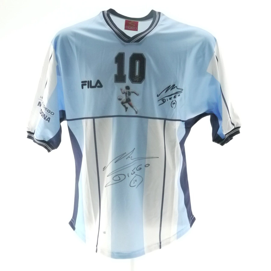 Maradona has signed the shirt on the front.