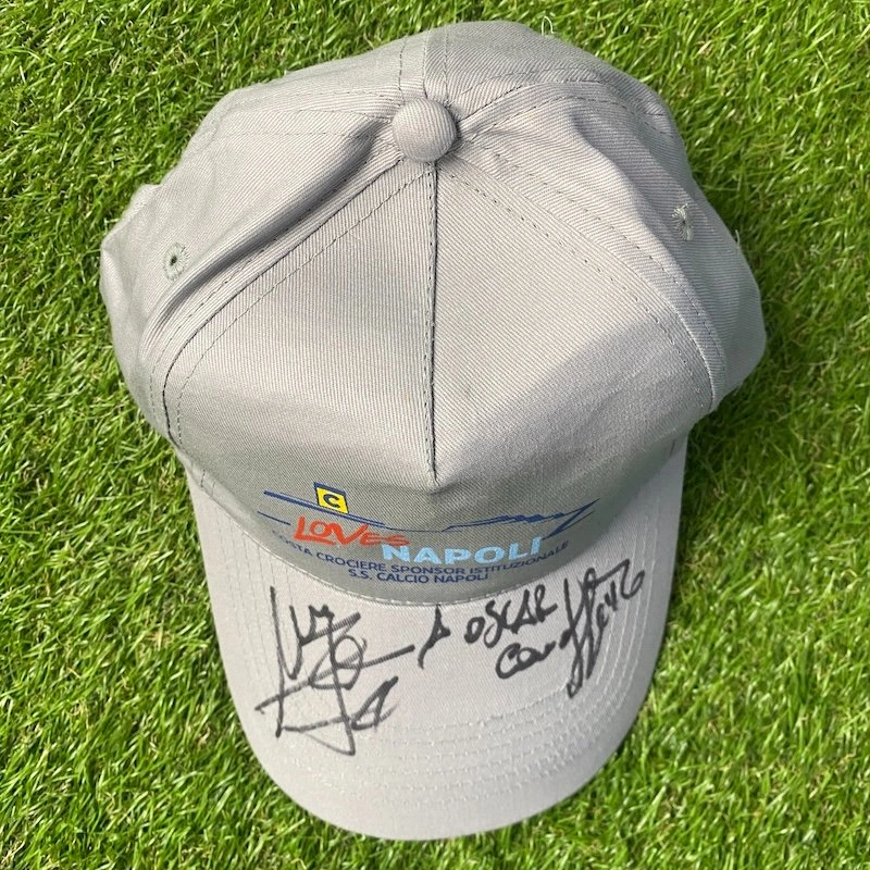 Napoli's store hat signed by Montervino.