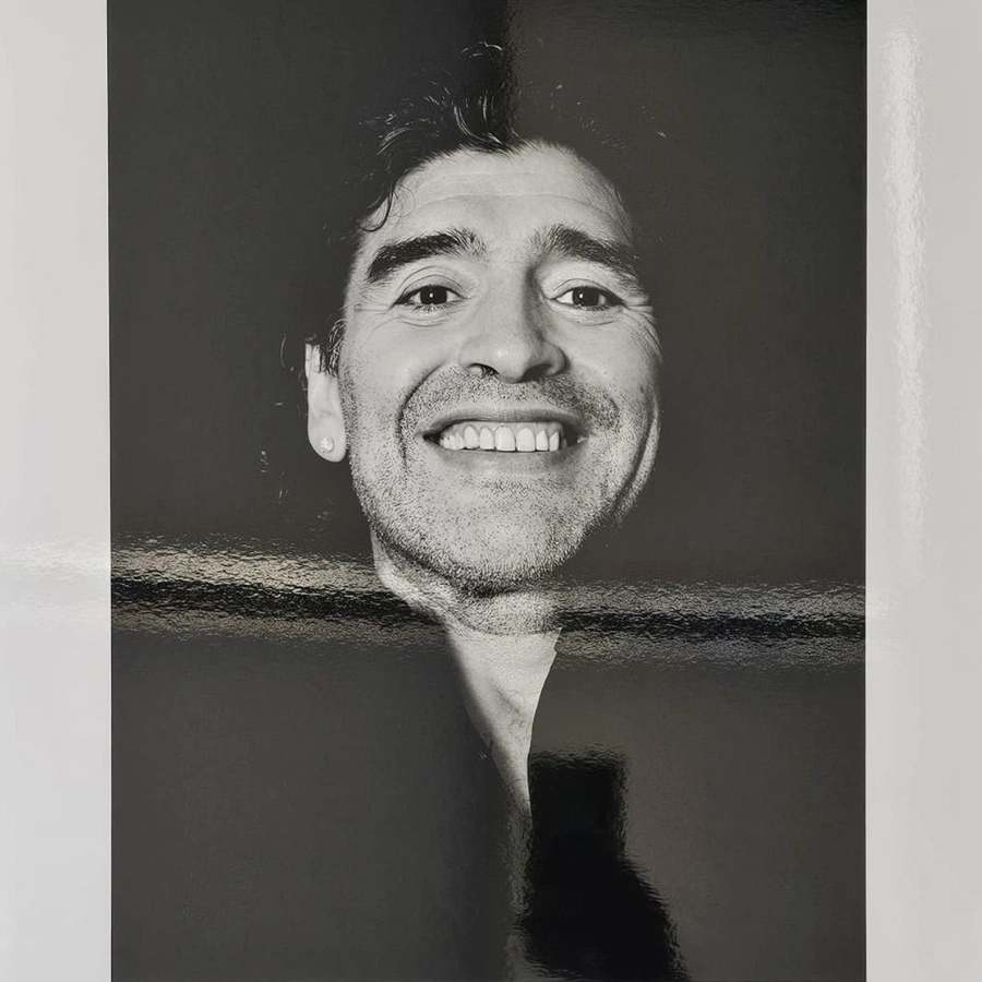 Box containing portraits of the Argentine and world football icon Diego Armando Maradona.