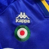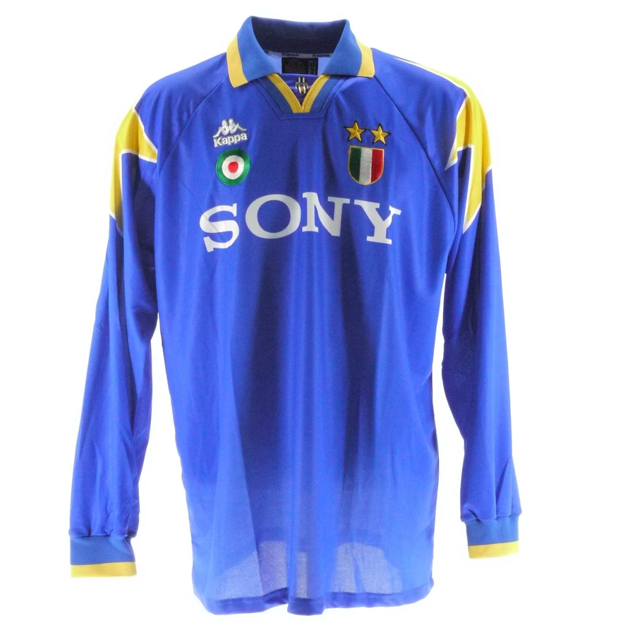 During 1995/96 season, Juventus wore the away shirt with that sponsor and without the name on the back only in the matches against Real Madrid and Steaua Bucharest, and Ravanelli wore the number 9, as visible in gallery.