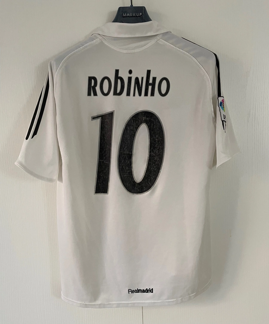 Real Madrid vintage shirt customized with Robinho's name and number, season 2005/06.