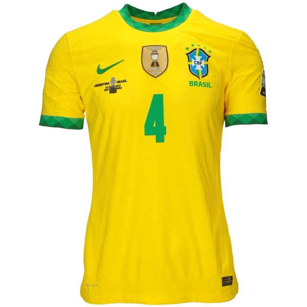 Brazil match issued / worn shirt by Marquinhos in Copa America final match against Argentina played on 10/07/2021.