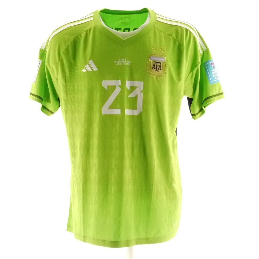 The Argentina match shirt issued / worn by Martinez in the World Cup 2022 final against France, played on 12/18/2022 in Qatar.