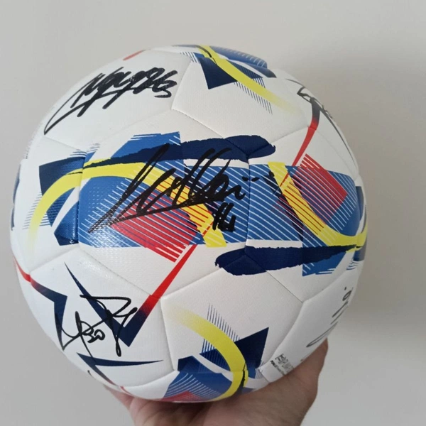 Some Napoli players including Neres and Raspadori have autographed the ball.
