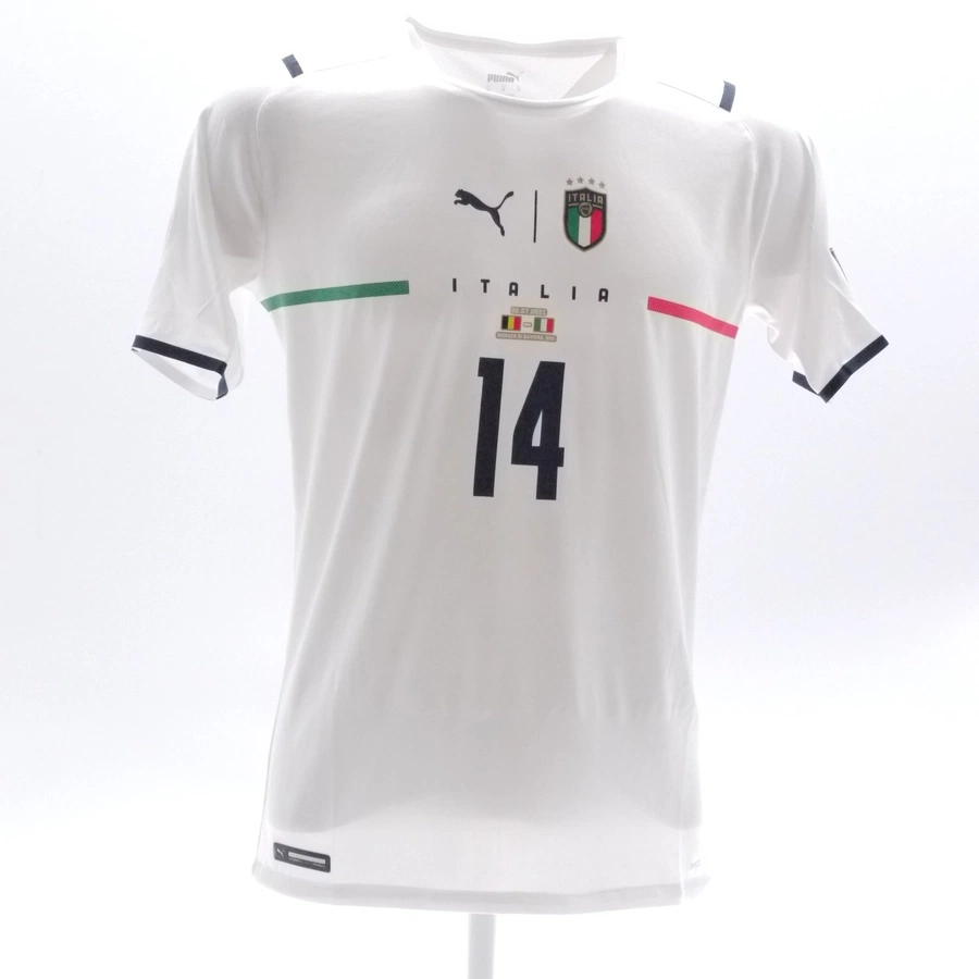 Italy National Team match issued / worn by Chiesa in the match against Belgium, valid for the quarterfinals of Euro2020, 2020/2021 season.