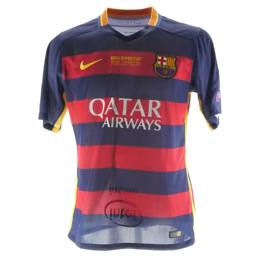 Barcelona match shirt issued / worn by Messi in the Spain Super Cup match against Sevilla played on 11/08/15, 2015/16 season.