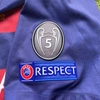 This memorabilia is part of the match supply made available to players during official competitions and is different in its features in relation to the ones sold in fanshops, it could have been worn during the match and washed after the end of the match or prepared for the match but then not used.
