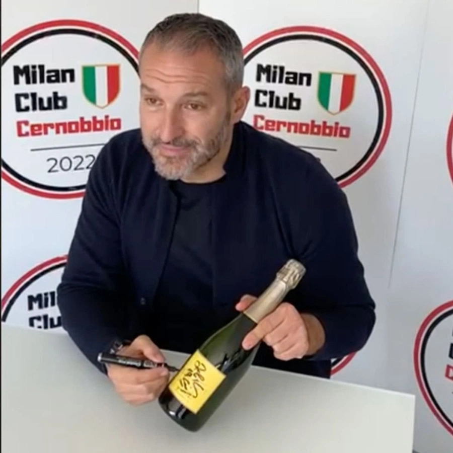 Gianluca Zambrotta has signed the bottle on the wine label.