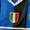This shirt has two peculiarities that differentiate it from the shirts used in the championship that year: according to UEFA regulations the back of the shirt had to be entirely black and the symbol of Milan on the back of the collar in the Champions League had to be covered.