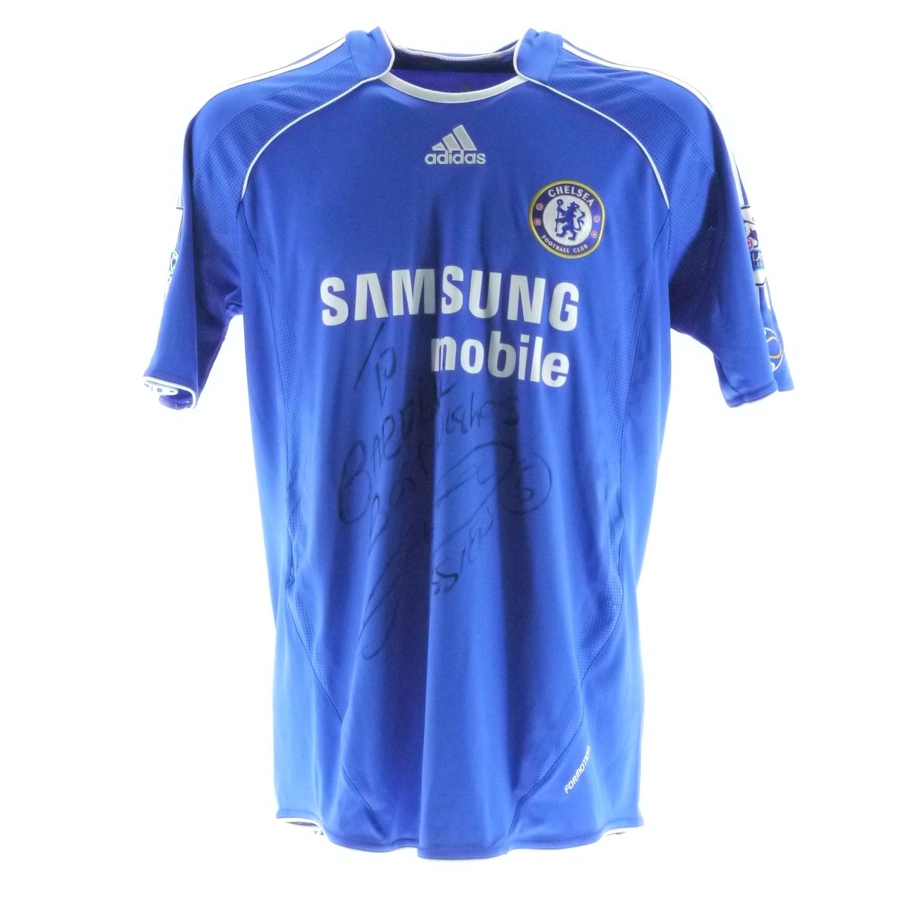 Essien autographed the shirt on the front with a special dedication to Franco Baldini who at the time was assistant manager to Fabio Capello at the helm of the England national team.