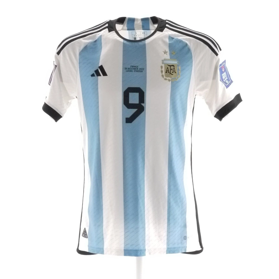 Argentina match shirt issued/worn by Alvarez in the World Cup 2022 Final against France played on 12/18/22 played in Qatar, 2022 season.