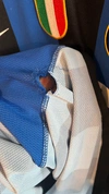This memorabilia is part of the match supply made available to players during official competitions and is different in its features in relation to the ones sold in fanshops, it could have been worn during the match and washed after the end of the match or prepared for the match but then not used.