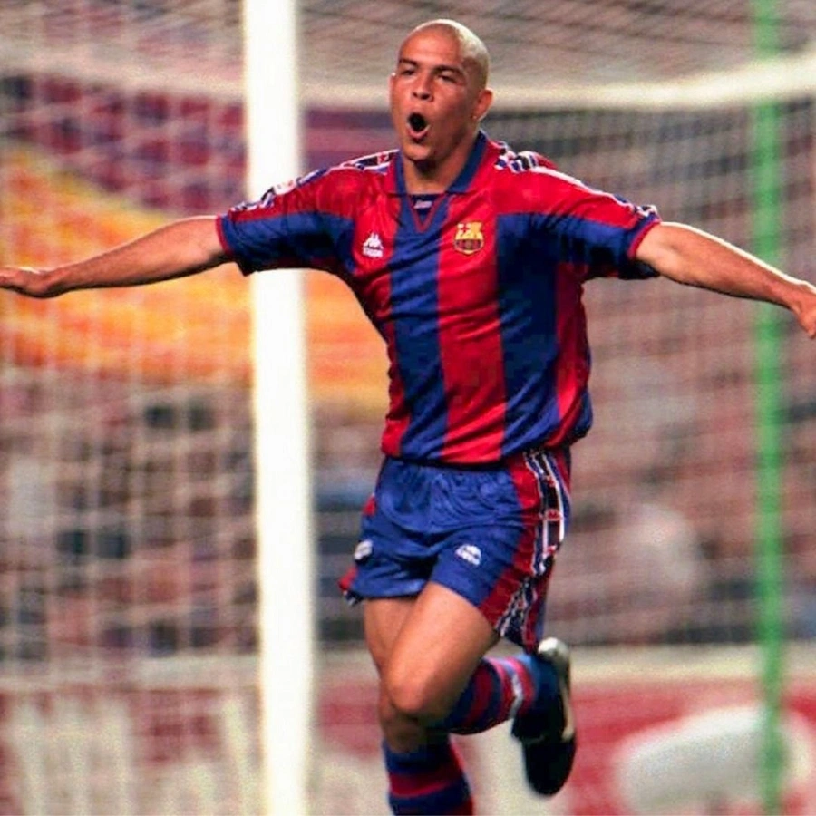 Barcelona store shirt, customized with Ronaldo name and number, 1995/96 season.