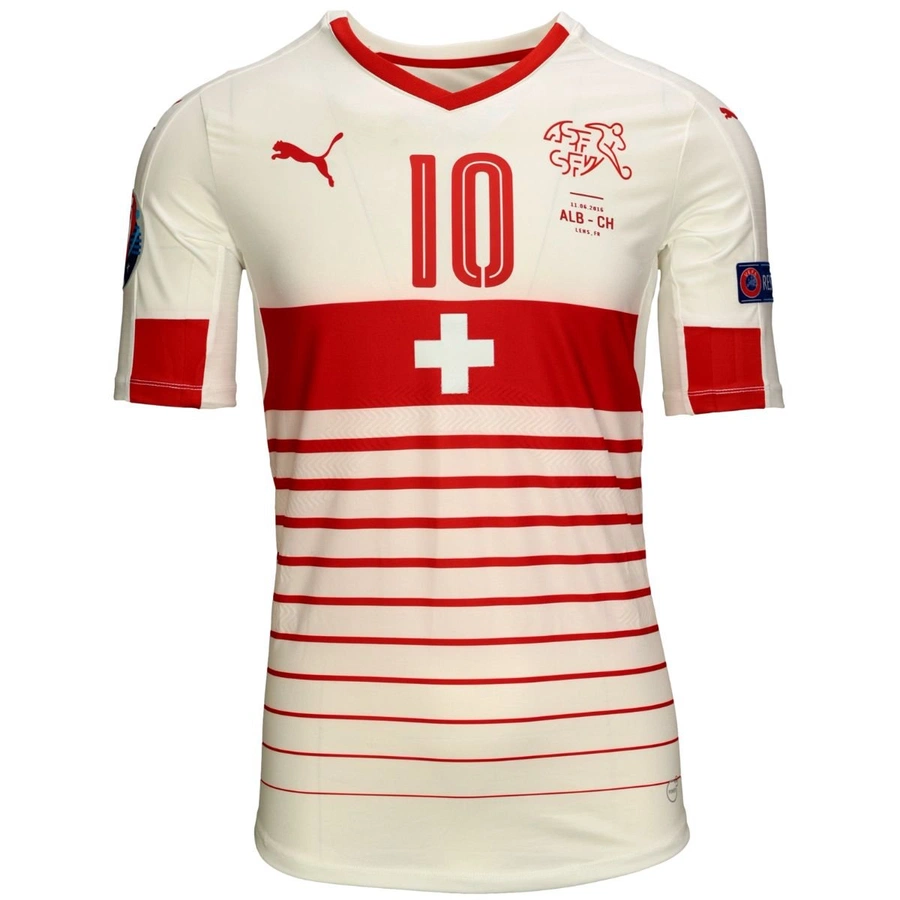 Switzerland match issued / worn shirt by Xhaka in the Euro 2016 match against Albania played on 11/06/2016, 2015/2016 season.