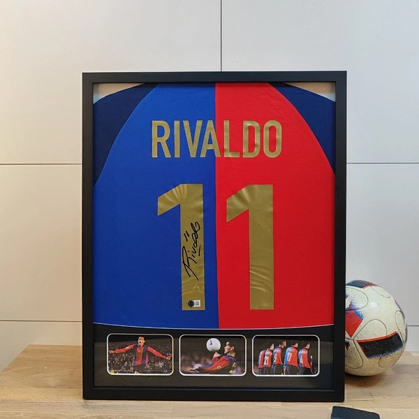 Rivaldo Barcelona store shirt | Framed | Signed with COA