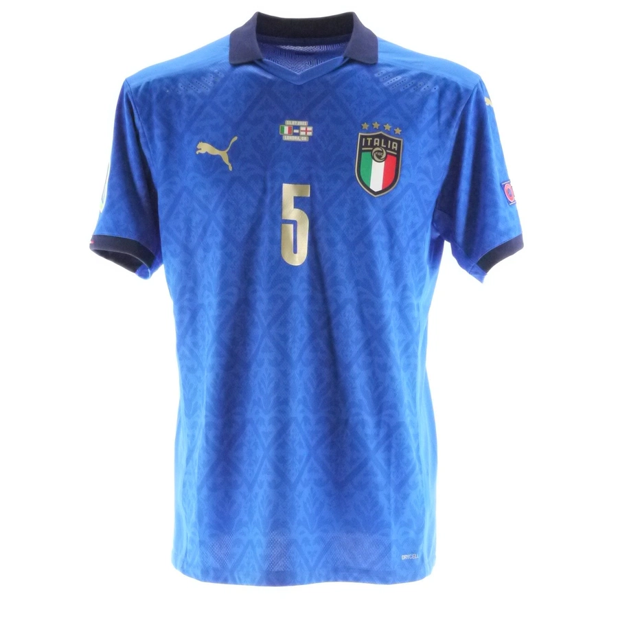 La maglia gara dell'Italia preparata / indossata da Locatelli in occasione della finale degli Europei 2020 contro l'Inghilterra giocata il 11/07/2020, stagione 2021.
