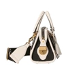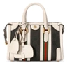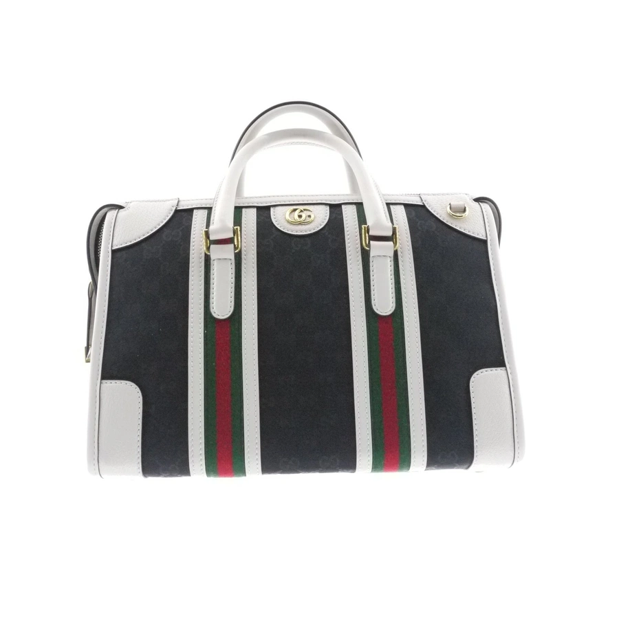 Borsa Gucci a mano in pelle Nero/bianco, pelle, caratteristico bordo con nastro Web a righe, caratteristico logo GG, due manici tondi, dettagli color oro, scomparto unico, tracolla regolabile e rimovibile e chiusura superiore con zip.