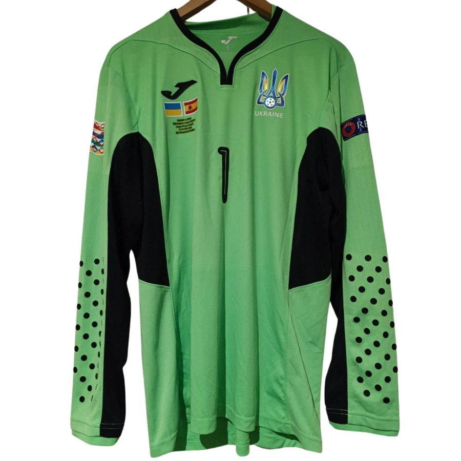 Maglia gara dell'Ucraina preparata / indossata da Bushchan nella partita contro la Spagna giocata il 13/10/2020, valida per la fase a gironi di Nations League.